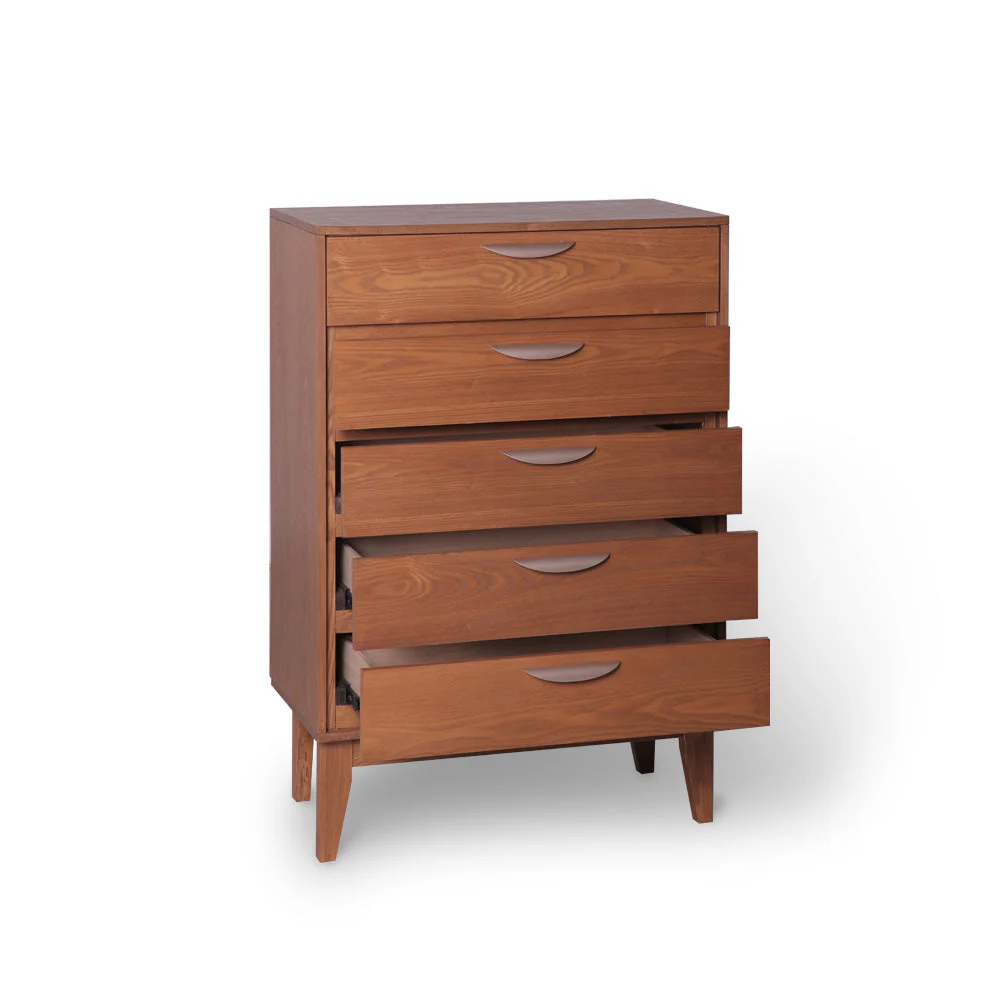 A Scandinavian style chest of drawers made from malaysian laminated veneer wood.