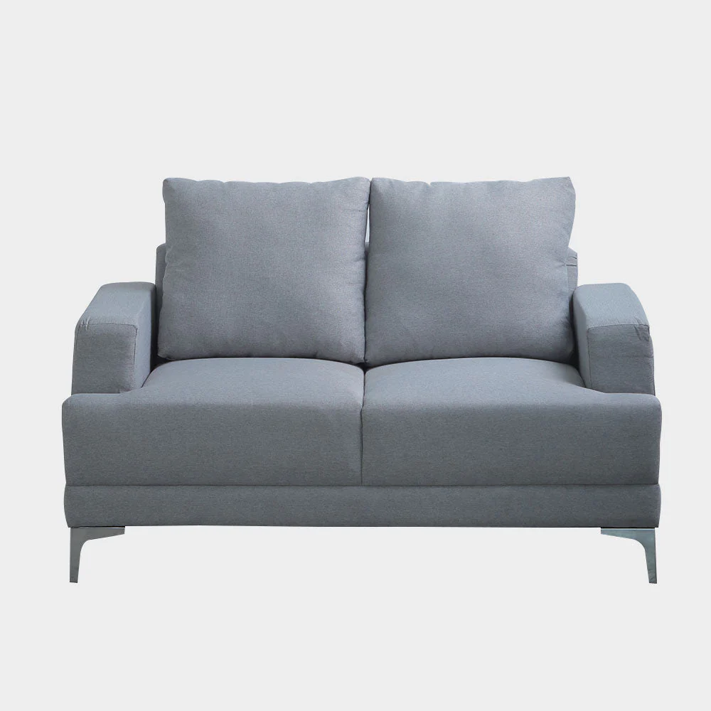 A Modern Contemporary style sofa made from kiln dried gmelina wood, padded with polyurethane foam, fully upholstered with chennile textured fabric and legs in chrome finish.