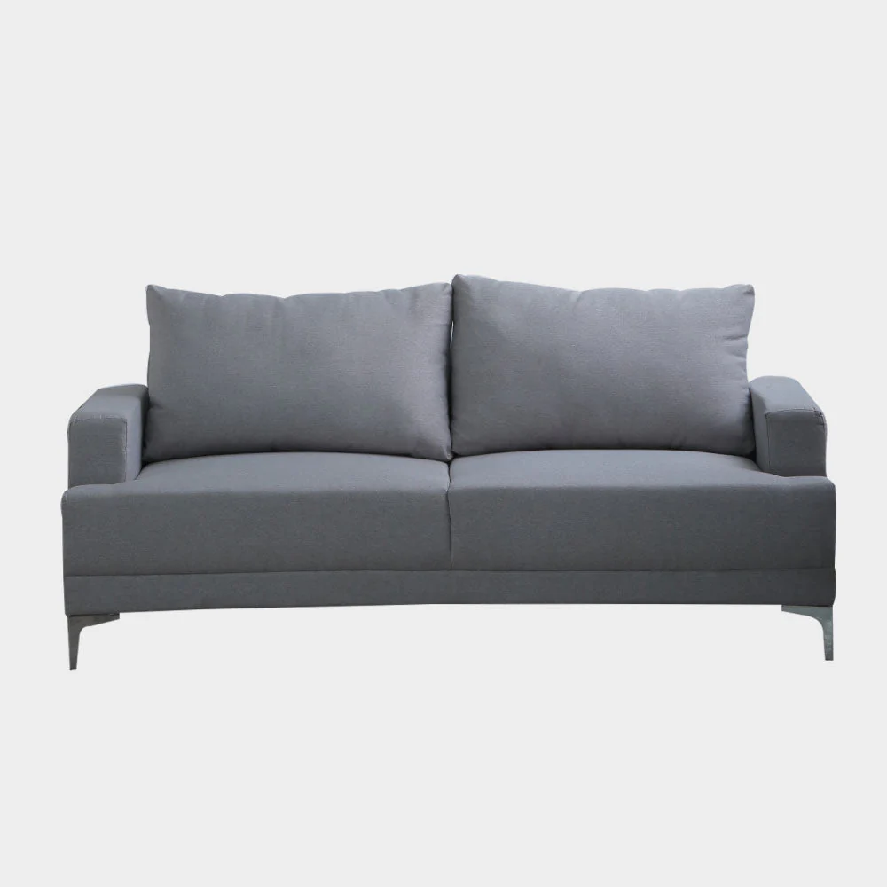 A Modern Contemporary style sofa made from kiln dried gmelina wood, padded with polyurethane foam, fully upholstered with chennile textured fabric and legs in chrome finish.