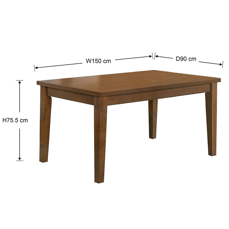Measurements | 150 cm 6 Seat Dining Table Width:?150 cm Depth:?90 cm Height:?75.5 cm 197 cm 8 Seat Dining Table Width:?197 cm Depth:?97 cm Height:?75.5 cm |