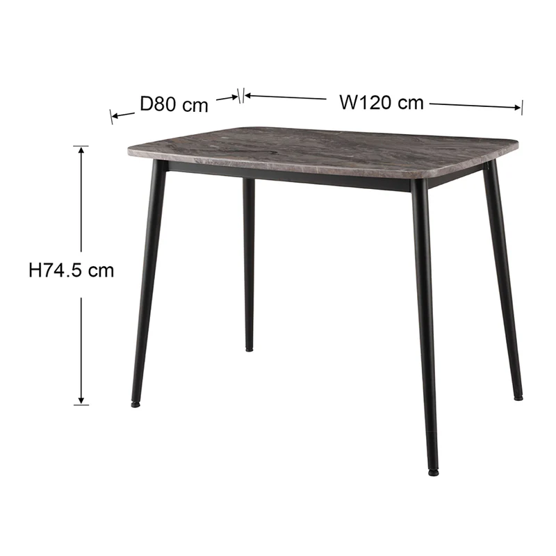 About this item | Available in 2 colors, Gray marble and Beige marble. This four-seater faux marble finish MDF table with metal legs replicates the look of real marble at a lower cost. With this choice, you may take advantage of marble’s sophisticated and elegant appeal without having to pay its costly price. |