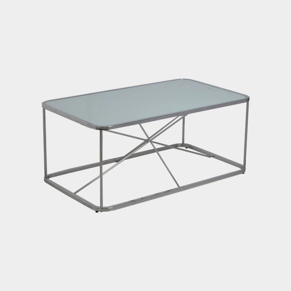 A Modern Contemporary center table made from 20mm square tube, round tube in chrome, and 5mm mirror glass top.
