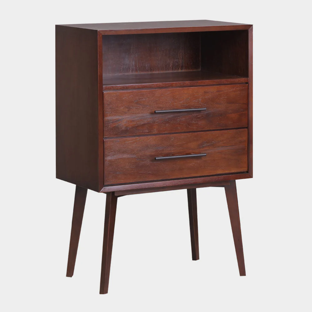A Mid-Century Modern sideboard made from composite oak, narra, kiln dried pinewood and solid wood footings.