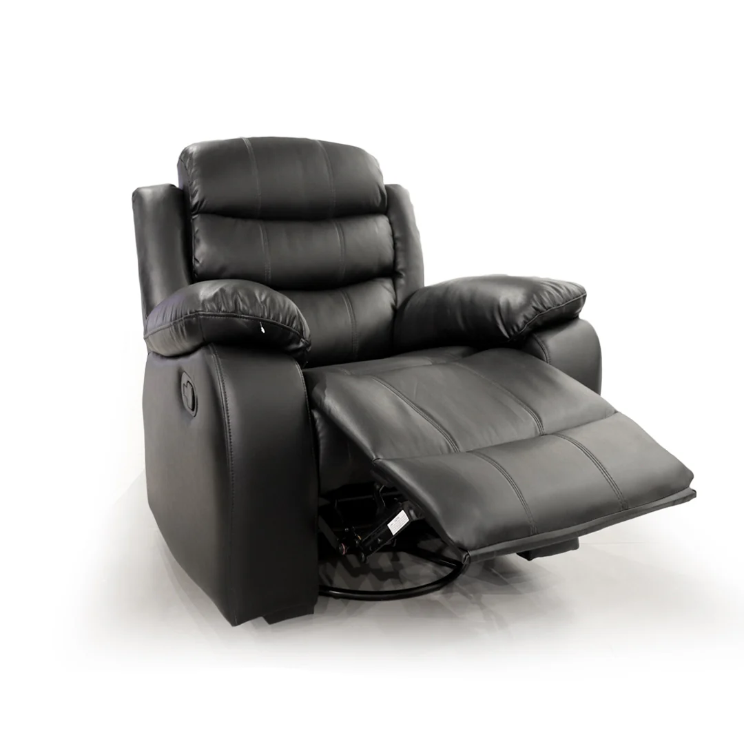A Modern Contemporary style recliner with manual mechanism, fully padded and upholstered in air leather.