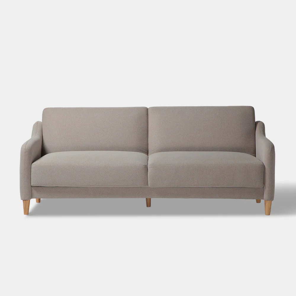 A Modern Contemporary Sofabed upholstered in Polyester Fabric. It’s Sofa look convertible to Sofabed with natural wood legst made it easy for comfort sitting by day and sleeping bed by night.