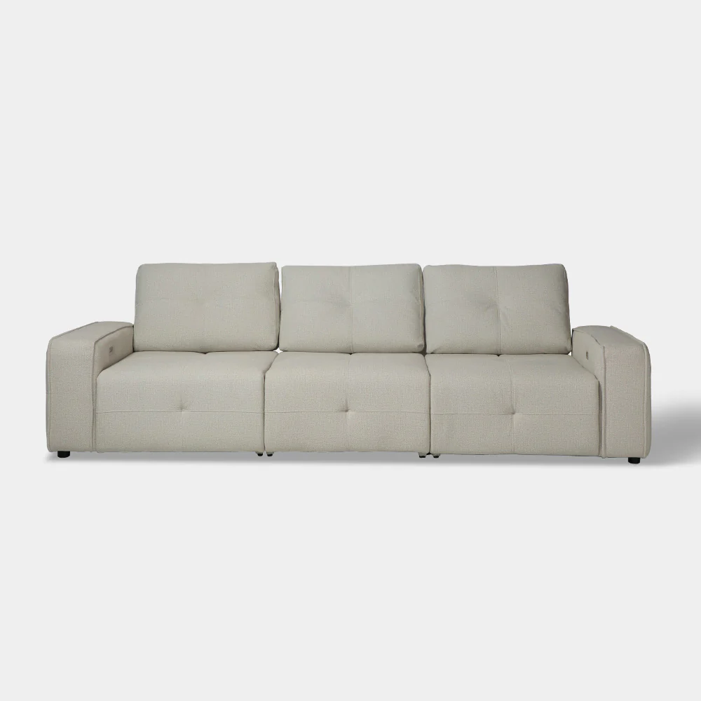 A Modern Contemporary Power Back and extendable/pop-up foot rest reclining function for all seat (left, right and middle part). Soft touch control for ease of use.