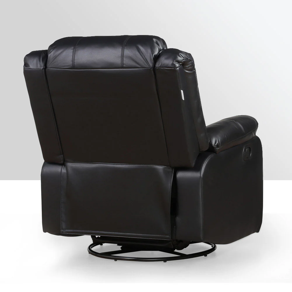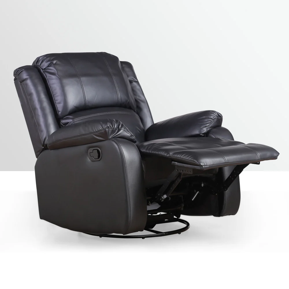 A Modern Contemporary style swivel recliner, fully padded and upholstered in air leather.