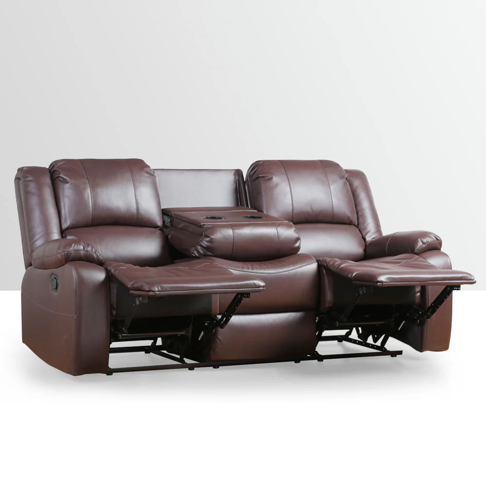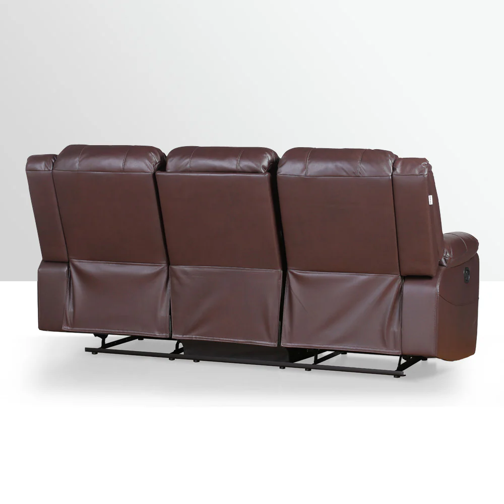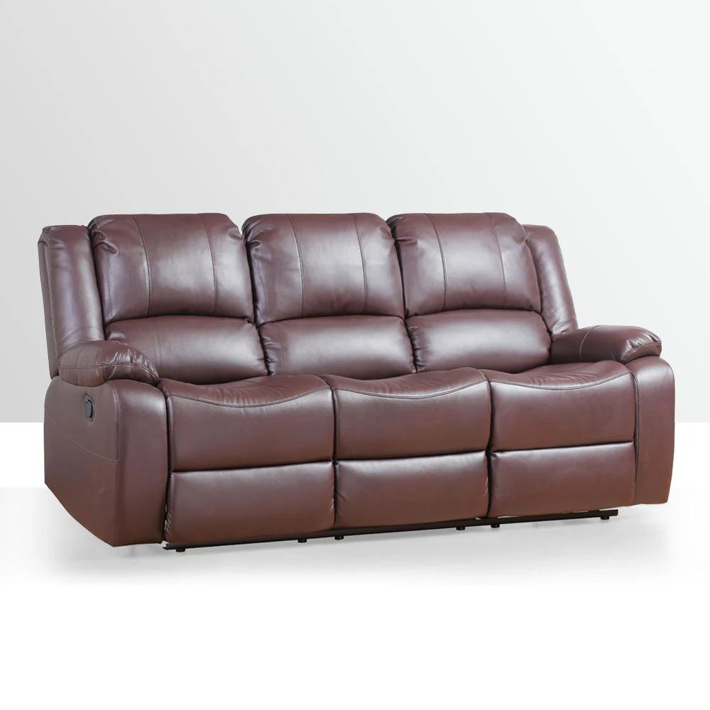 A Modern Contemporary style 3-seater recliner with manual mechanism, fully padded and upholstered in air leather.