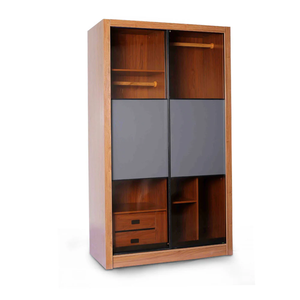 A Modern Contemporary style sliding wardrobe with glass door and 2 drawers.