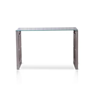 A Modern Contemporay style console table made with metal chrome framing with clear tempered glass table top. Size: L120xW40xH78 cm Weight capacity: 45 kg