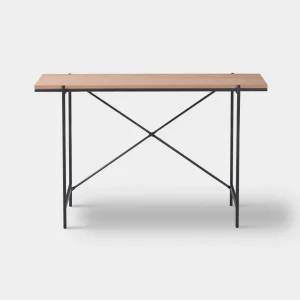 A Scandinavian console table with natural veneer table top and powder coated metal legs. Size: L120xW39xH75 cm Weight capacity: 20 kg