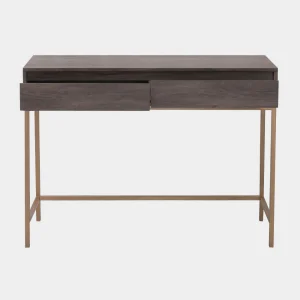 A Modern Contemporary style console table made from kiln dry solid wood, with tempered bronze glass table top and aluminum edging detail. Size: L120xW46xH86 cm Weight capacity: 10 kg