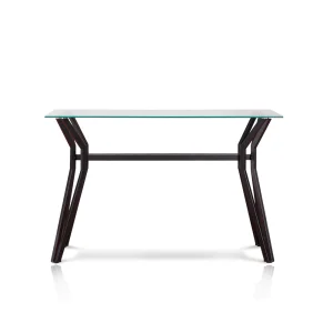 A Modern Classic Style console table made from solid rubberwood with brown colored tempered glass table top. Size: L120xW40xH74.6cm Weight Capacity: 19.6kg